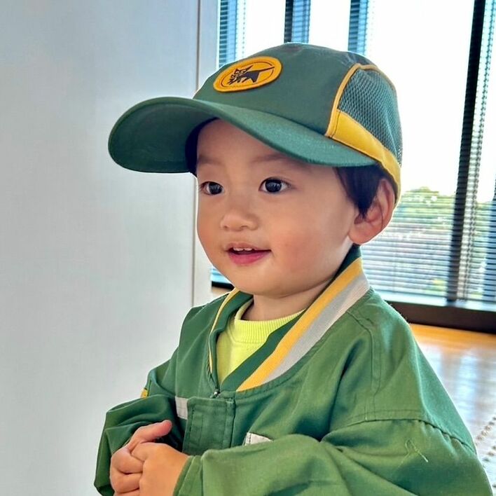 公開された写真には、おばたのお兄さんの息子が、緑のジャケットとキャップをかぶって笑顔を見せている姿が!