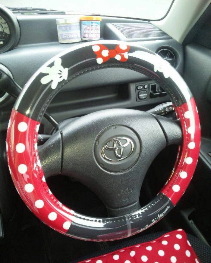 さらに、鈴木さんはミニーちゃん柄のハンドルカバーやクッションなど、内装の写真も公開!