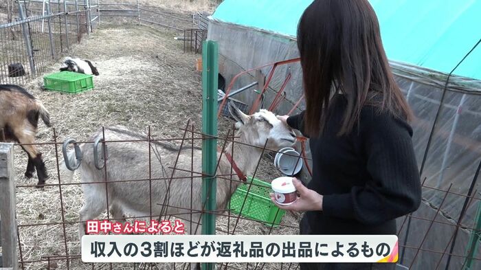 シャインマスカット以外にも、「卵」や「ヤギの石けん」なども返礼品として出品しているという、田中果樹園。収入の3割ほどが、返礼品の出品によるものだといいます。