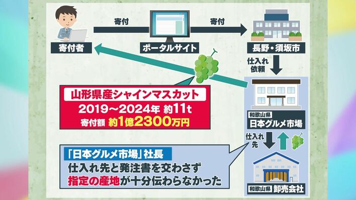 その仕入れを依頼されていた和歌山県に本社を置く「日本グルメ市場」が、山形県産のシャインマスカットを“長野県産”と偽って表示し、送っていたことが分かりました。