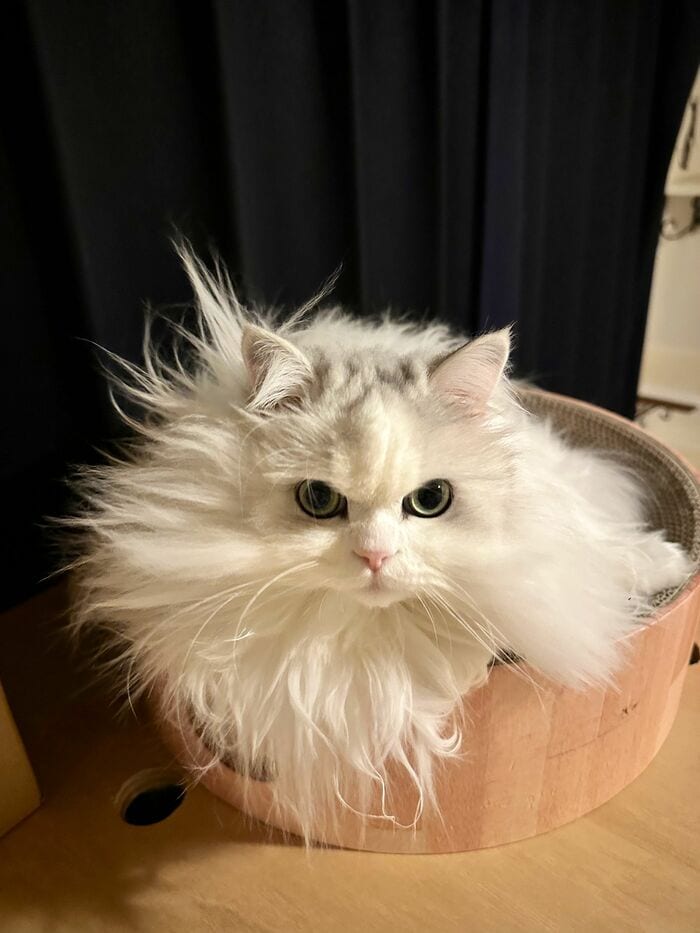 そんなノーマンくんと一緒に暮らしているのは、5歳のラガマフィン・エマちゃん。こちらも茶色くて長い毛がとっても優雅ですが、実はお転婆娘。