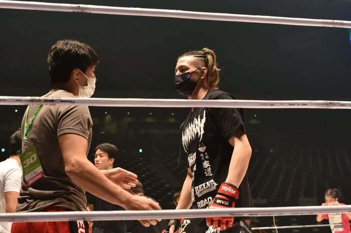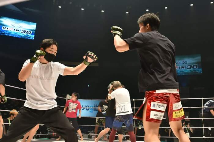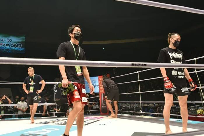 その後、兄の朝倉未来選手と一緒にリングチェックへ。いつも通り、打撃やグラウンドの動きを黙々と確認する。対戦相手のアラン“ヒロ”ヤマニハ選手は、「RIZIN.28」(2021年5月・東京ドーム)で、兄の未来選手に勝利したクレベル・コイケ選手と同じ「ボンサイ柔術」の所属だ。兄の仇を取りたい海選手にとって、今大会の試合は、朝倉“兄弟”vsボンサイ柔術チームの対決となる。