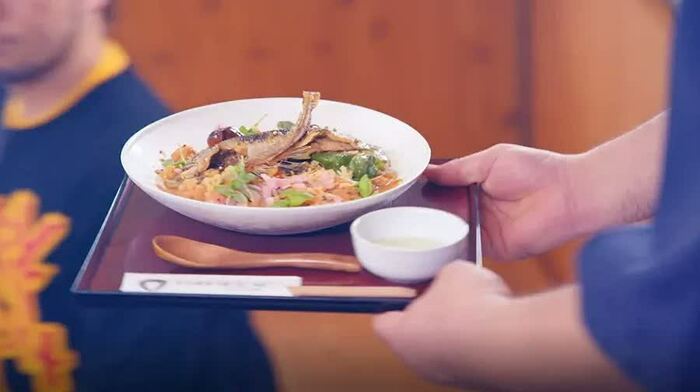 オマリーさん:かつお出汁を使ったラッサムです。鮎を酢で炊いて、複数の野菜を使ったガスパチョをシャーベット状にしています。