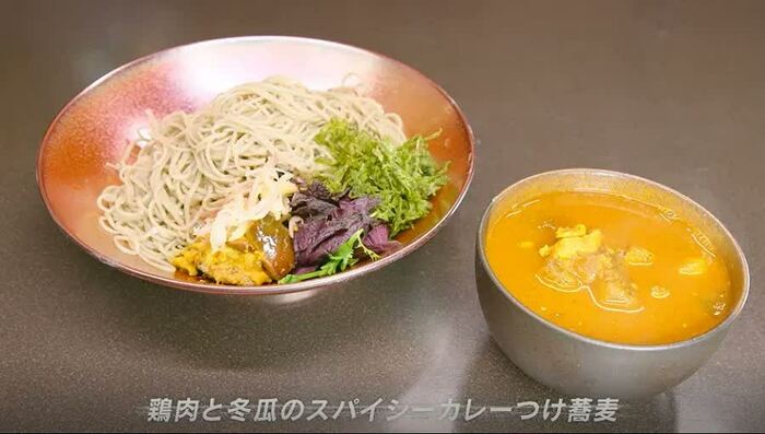 本日の料理 2品目「鶏肉と冬瓜のスパイシーカレーつけ蕎麦」