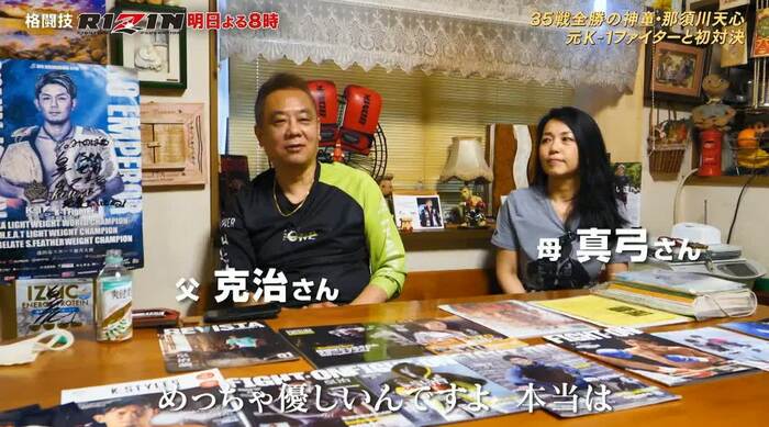 番組では、その天心選手の対戦相手で元K-1のスーパースター・皇治選手の人気の秘密を追う。地元・大阪で、父の克治さんをインタビュー。日本拳法の師範である克治さんは、幼い皇治選手を指導するだけではなく、自宅前を“リング”に見立てて、ケンカをさせたり、「かかってこい!」とご本人いわく「しばいてどついて」たりしたそうだ。そんな父に皇治選手はどんな思いでいるのか?ふたりの絆が見える秘話もたっぷり紹介される。