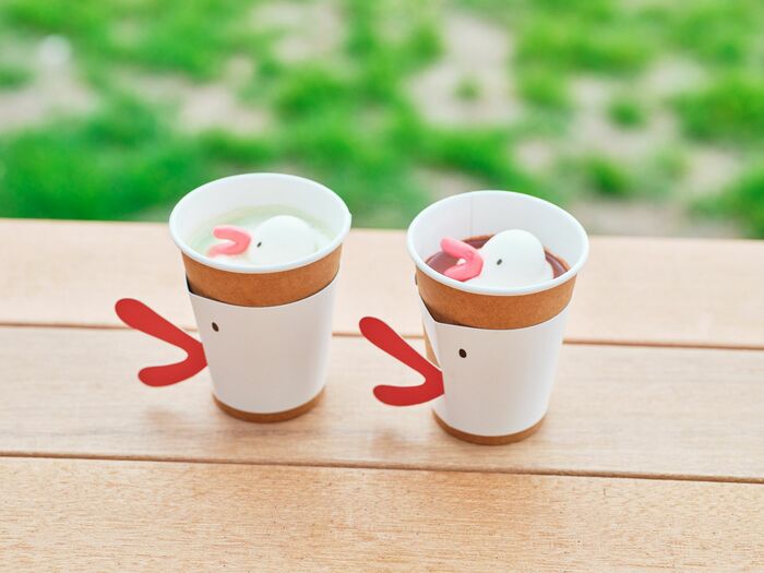 扇町公園にソフトオープンしたテイクアウトショップ「扇町茶屋」では、11月22日(金)からハチエモンの形をしたマシュマロを使った限定メニュー「ハチエモンドリンク(チョコレート/抹茶ミルク)」を展開。