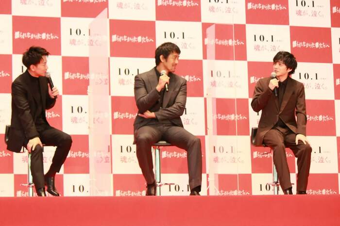 阿部と林は刑事のバディ役で同じシーンが多かったので連絡先を交換していたそう。それを聞いた佐藤は「えっ、交換してるんですか?まじっすか!?」と驚きが隠せない様子だった。