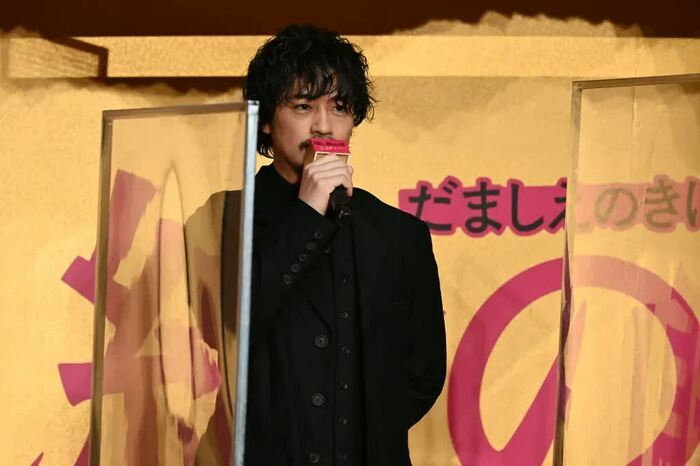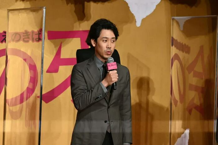 キャストと監督は、会場に設置された、高さ10メートルにも及ぶ大泉の巨大看板の口元から姿を見せ、さらに銀テープが放出される特効も。コロナ禍では珍しい派手な演出に、大泉は「そうとう派手な趣向でやっていただきまして、大変うれしいなと思いますが…これだけでっかい顔を作られて、その口から出るっていうのは…気持ち悪い」と、さっそくぼやく。
