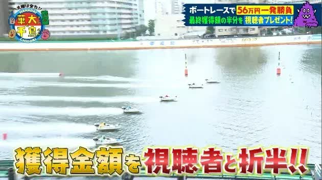 ノブから「目が血走ってる」と言われるほど興奮していた大悟、ボートレースに詳しい華丸を中心に予想し、これまでに獲得した賞金全額をつぎ込んで、視聴者のため、大勝負に出る!