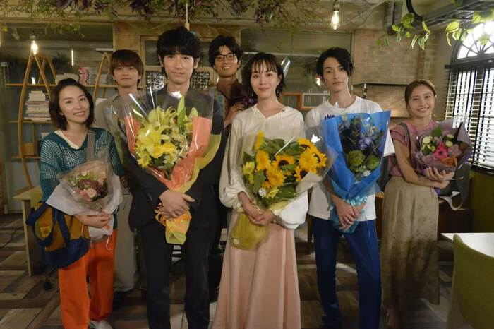 ラストカットのOKが出ると、無事にクランクアップを迎えた7人は、スタッフからそれぞれ花束が渡され、温かい拍手に包まれた。