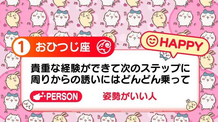 『めざましテレビ』で放送中の「ちいかわ占い」 テレビ放送がない日はお休みで、月~金:朝7時以降/土:朝8時半以降に更新予定です。