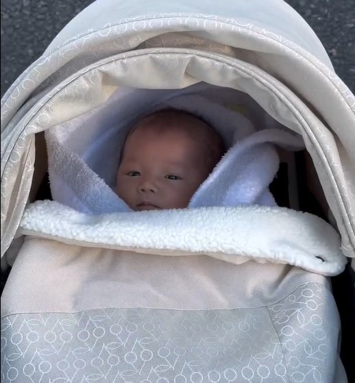また、ベビーカーを揺らしながら、「わ~」というような表情で息子をあやす姿や