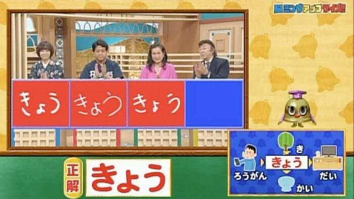 正解は「きょう(老眼鏡・キキョウ・兄弟・教会)」。藤田さん、河田さん、白都さんが正解!