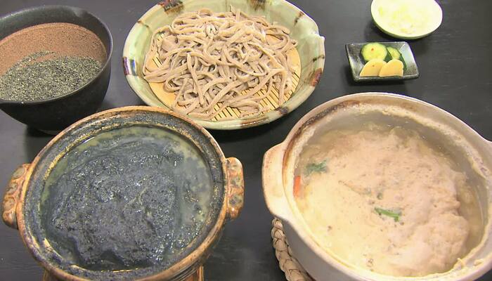 安達さんは、「うちはそば屋なので、今度の料理はそばで、つけ麺なんです。(つゆには)竹炭が入ってます。体にいいものを全て入れました」と紹介。