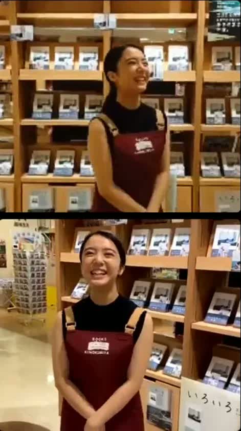 エプロンを付け、「さっきまで舞台をやっていて、髪がボサボサです」と嘆きながらも、「なんかすごいですね。夢みたい。うれしいです。本が好きなので」と、憧れの書店員の仕事に喜びをにじませた。