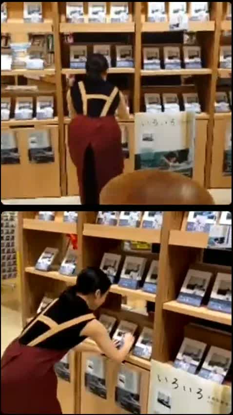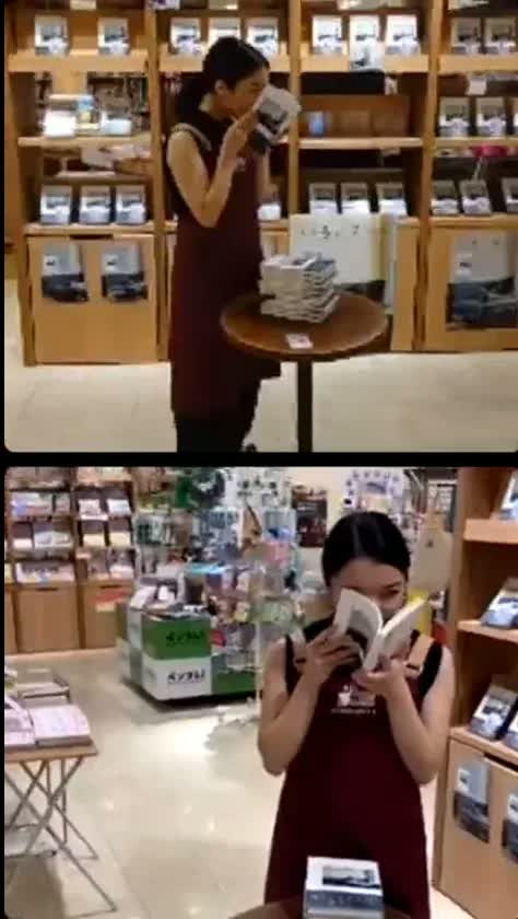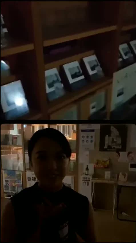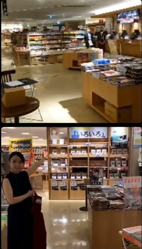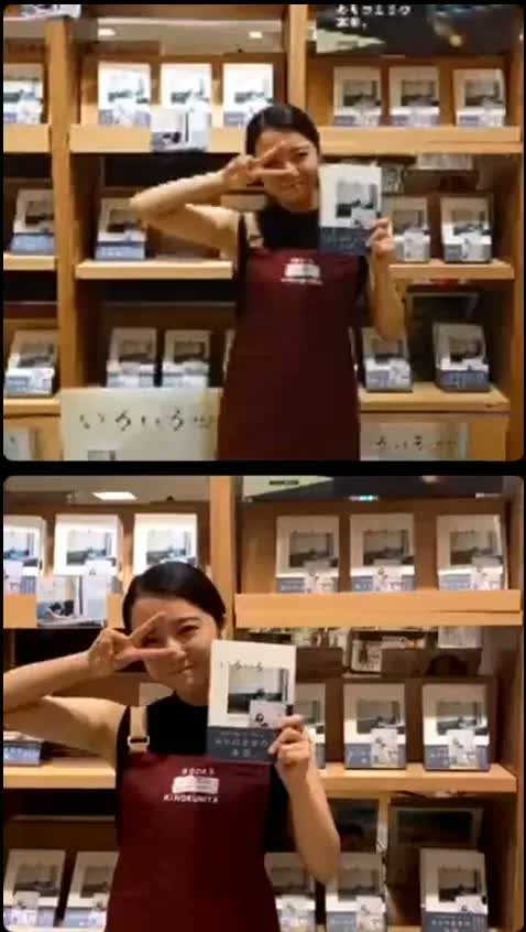 閉店後らしい薄暗い照明の中、「ついに明日、初めてのエッセイ集が発売されるので、品出しに来ました。これから品出ししたいと思います。レッツゴー!」とニッコリ。