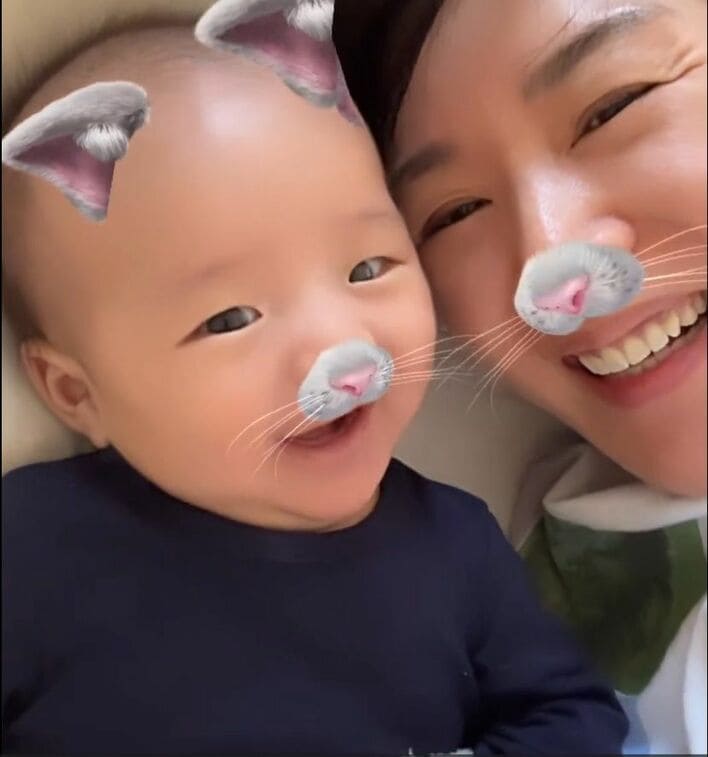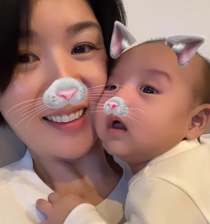 2024年12月に出産した長男と一緒にトレーニングする姿などを動画で公開しました。