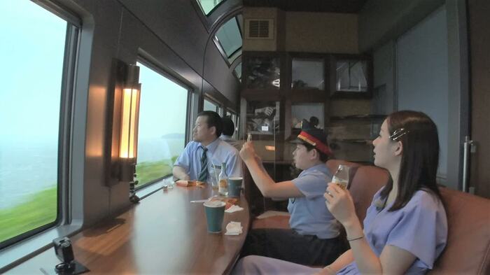バラエティ番組のカメラが車内に入るのは今回が初めてのこと。豪華列車に目がない福澤朗は、「二朗さん乗ったんですか!?よくロケさせてくれたなあ」と驚きとうらやましさで大興奮の様子。