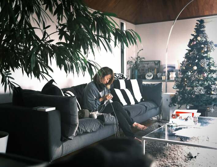 過去の投稿では、自宅のリビングにあるソファに座って編み物をしている妻の様子や…