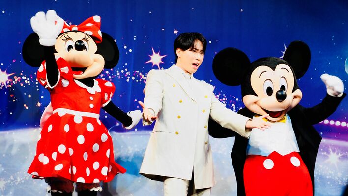 『ディズニー・オン・アイス“Magic in the Stars”』の記者発表会が4月3日に都内で開催され、ミッキーマウス&ミニーマウスと、スペシャルサポーターに起用された宮舘涼太(Snow Man)さんが出席しました。