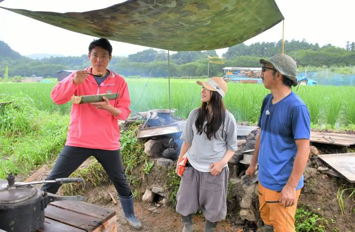 この日、松岡修造は、畑の中に設置されたかまどで料理をしている人たちと遭遇。「畑の中で何しているのですか?」と尋ねると、遠藤昭一さんが「育てた野菜をその場でみんなで料理して、すぐに食べるというのをコンセプトでやっています」と教えてくれた。楽しそうな雰囲気に、松岡も一緒に調理させてもらうことに。