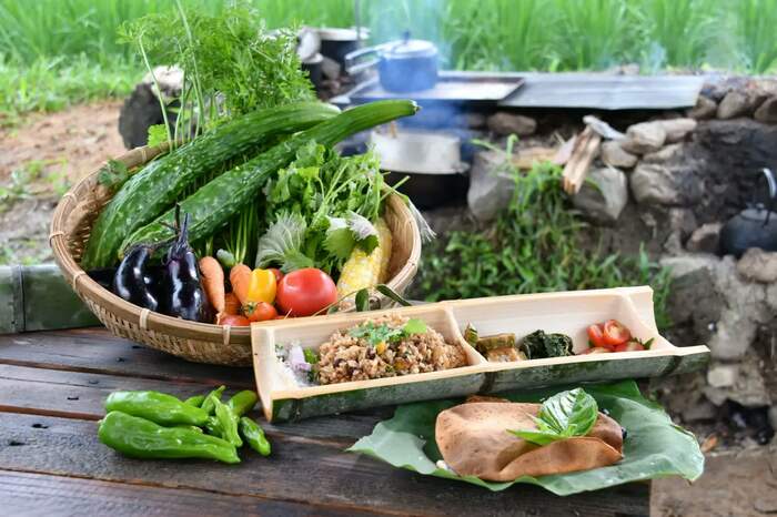 そもそも、なぜ畑の中で調理をすることになったのか、との質問に遠藤さんは、「パーマカルチャーというコンセプトがありまして、その場にある材料を自分たちで作って、楽しい暮らしを手作りして、どんどん豊かにしていくもの」だと解説した。