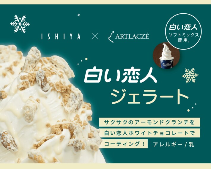 2025年4月23日(水)、北海道北広島市で誕生した地域の食文化の発展と新たな体験を提供するARTLACZE(アルトラーチェ)は、リニューアル後1周年を迎えるタイミングで、同じく北広島に製造拠点を持つ、北海道を代表する菓子メーカー石屋製菓株式会社(本社:北海道札幌市、代表取締役社長:石水創)とコラボし、同社の看板商品である「白い恋人」の味わいを彷彿させる白い恋人ジェラートを期間限定で発売いたします。
