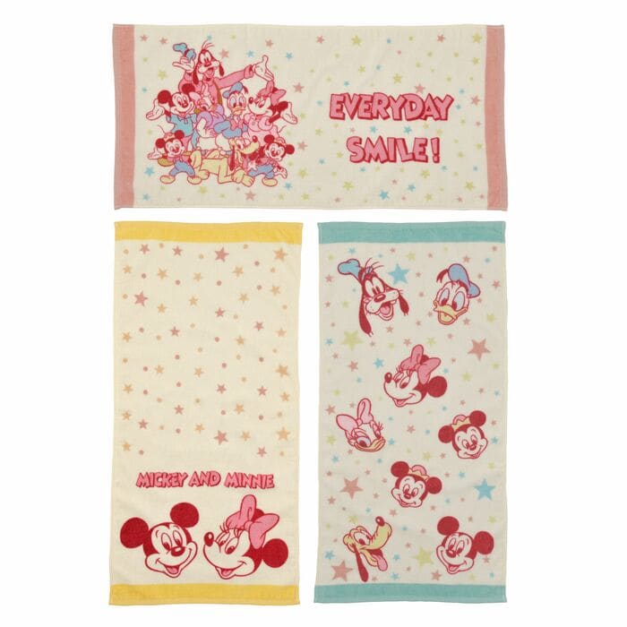 他にも、ミッキーマウスやミニーマウスが描かれ、どこかレトロなデザインが特徴のフェイスタオルセットも。3枚セットで、3000円が1800円の40%オフに!