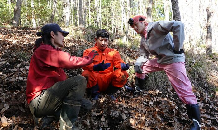 EXITが食材探しに奮闘するなか、本番組3度目の出演となるEverybodyは、バイオ炭作りに挑戦。竹林の整備と水質改善の関係を学びながら、バイオ炭を使った野菜作りにも挑戦し、自然の循環について学びます。