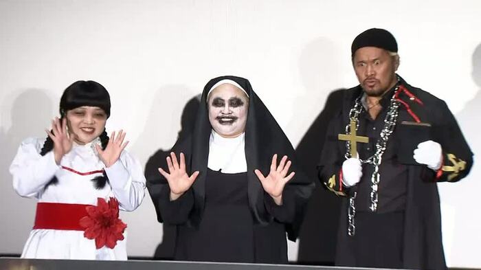 9月29日(水)、映画「死霊館 悪魔のせいなら、無罪。」の公開直前イベントが行われ、ゲストにおかずクラブ(オカリナ、ゆいP)とプロレスラーの真壁刀義が、ひと足早いハロウィン風コスチュームで登場した。