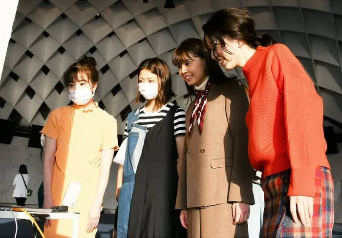 宮澤アナの首元のスカーフのアリ・ナシを試したり、「重心は片方において」「髪は後ろに流そうか」と、次々と細かい指示を出す三上アナ。「肩に手を置いてみて」「仲良さそうにキュッと抱き合って」と杉原アナの指示にも力が入る。