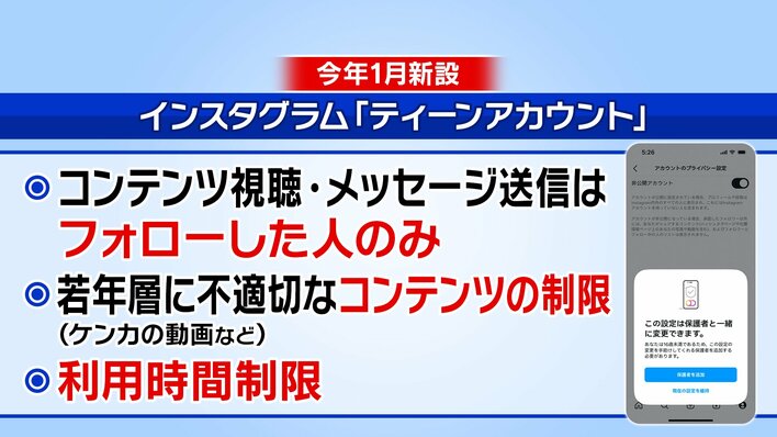 また、Instagramでは今年の1月から「ティーンアカウント」が設置され、アプリ側で利用時間やコンテンツを制限することが可能になったといいます。