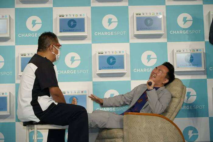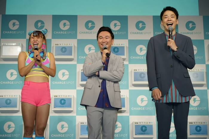 また、濱家も普段から「ChargeSPOT」を使いこなすというヘビーユーザーで「ChargeSPOT」のシールを貼ったスマートフォンを持ち、さりげなく“好き”アピール。その姿に、フワちゃんからは「キモイ!」、相方の山内からも「媚びすぎている!」とツッコミが入った。