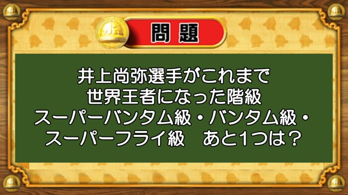 プロボクサー・井上尚弥選手がこれまで世界王者になった階級は、スーパーバンタム級・バンタム級・スーパーフライ級、あと1つは?