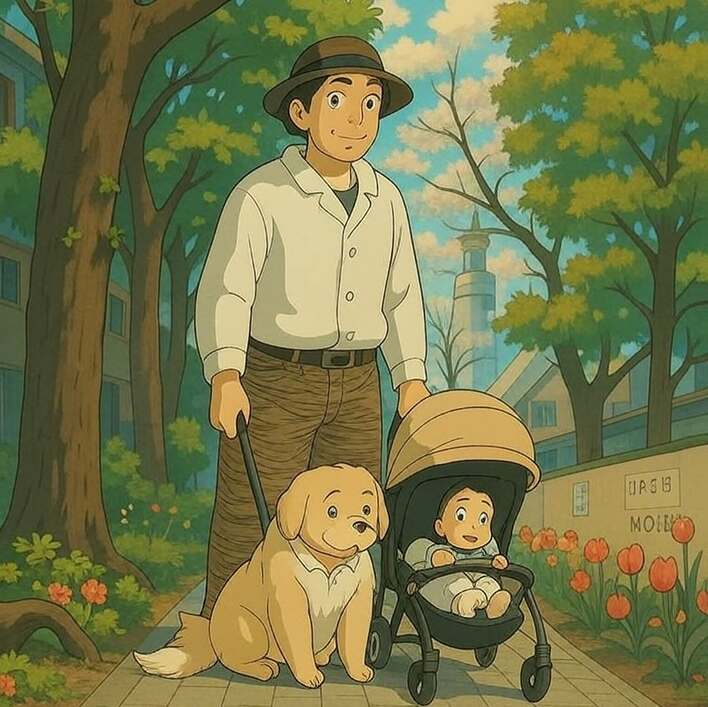 今回の投稿では「べびたんと神ちゃんと写真撮ったから、流行りのAIでジブリ風にかわいくしてもらおうと思ったら...」とつづり、今話題となっている、AI加工した画像を公開しました。