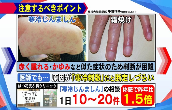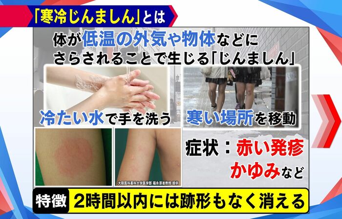 寒さが一段と厳しくなる中、寒さに反応して発症する「寒冷じんましん」。
