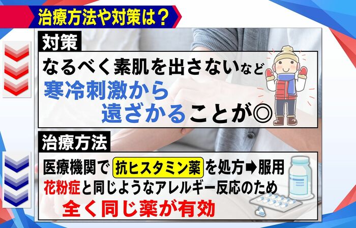 日頃からできる対策としては、なるべく素肌を出さないなど、寒冷刺激から遠ざかることが大事だといいます。