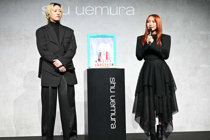 2025年4月8日、「シュウ ウエムラ」のブランドアンバサダーに就任した、YOASOBIのAyaseさん(31)とikuraさん(24)が、都内で行われたPR記者発表会に登壇。オールブラックの衣装に身を包み可憐に登場しました。