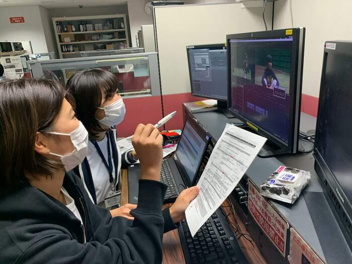 歳内:同期入社で、年齢は私が1つ上です。昨年の『FIVBワールドカップバレーボール2019』で、 私はバレー班、中継班だったのですが、そこにニュース班である野﨑さんが応援に来てくれて、約1ヵ月間一緒に仕事をしました。