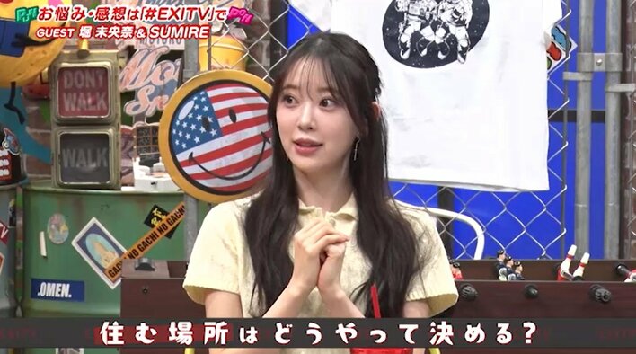 EXITがゲストとリラックスしたトークを繰り広げる『EXITV』(フジテレビ)。4月8日の放送回ではゲストにドラマ『女優めし』で共演する、元・乃木坂46の堀未央奈さんとSUMIREさんを迎えて、りんたろー。さんと兼近大樹さんと「物件トーク」で盛り上がりました。