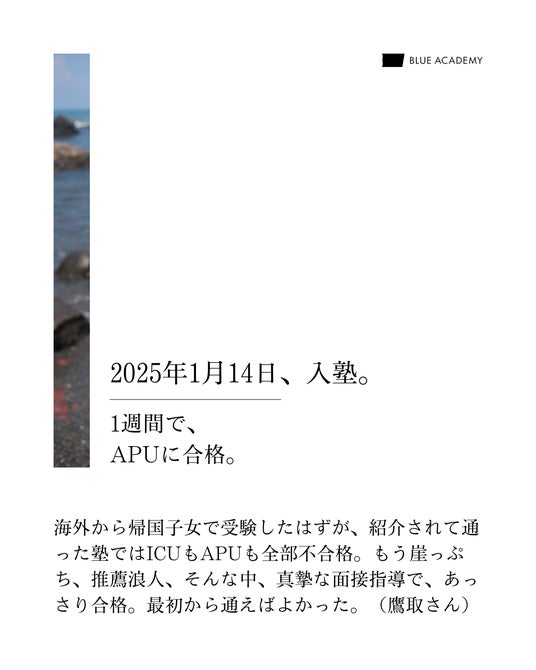 2025年1月14日、入塾。1週間で、APUに合格。