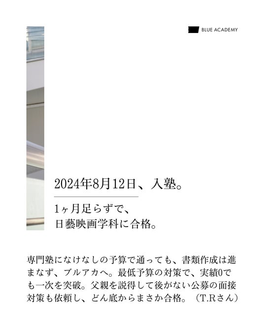2024年8月12日、入塾。1ヶ月足らずで、日藝映画学科に合格。
