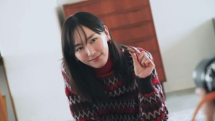 グラフィック広告は、冬の温かさを感じさせるハウススタジオの中で撮影。冬を感じさせるニットを着た新垣は、カメラの前で終始リラックスして撮影に挑んだ。
