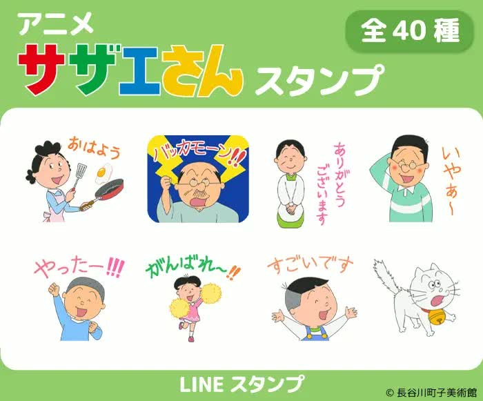 1969年に放送を開始し、2019年にはアニメ50周年を迎えた国民的アニメ『サザエさん』。毎週日曜18時30分から放送し、幅広い世代から愛され続けている本作が、全40種類のLINEスタンプになって登場することが決定した。