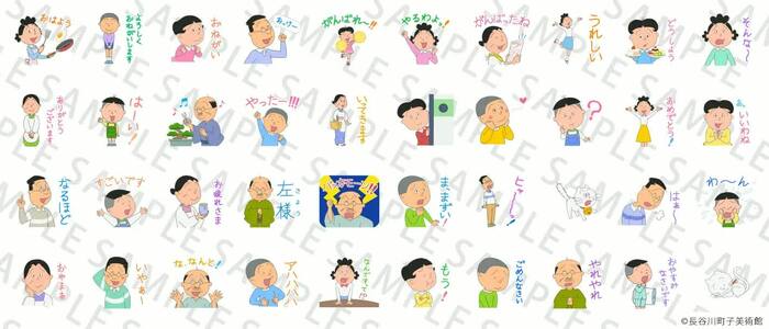 アニメ『サザエさん』の制作会社「エイケン」が、このスタンプのために特別に書き下ろしたものとなっている。それぞれのキャラクターに合ったセリフもついており、さまざまな場面で使用できそうだ。