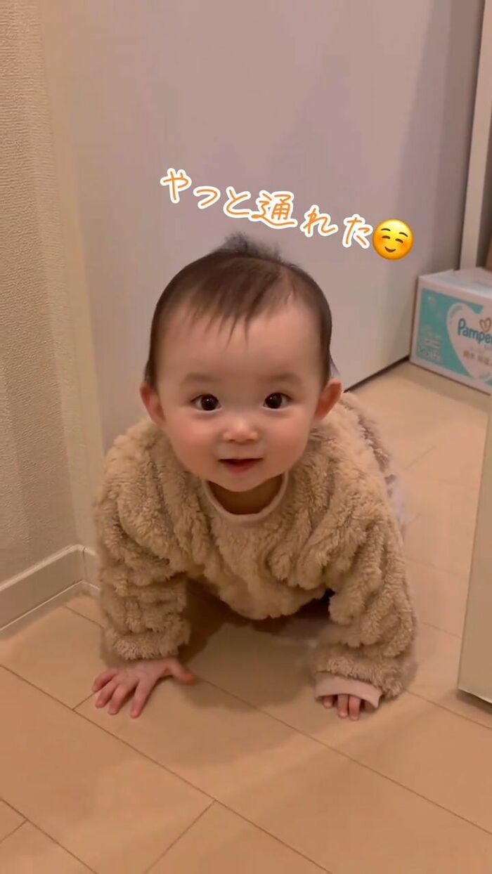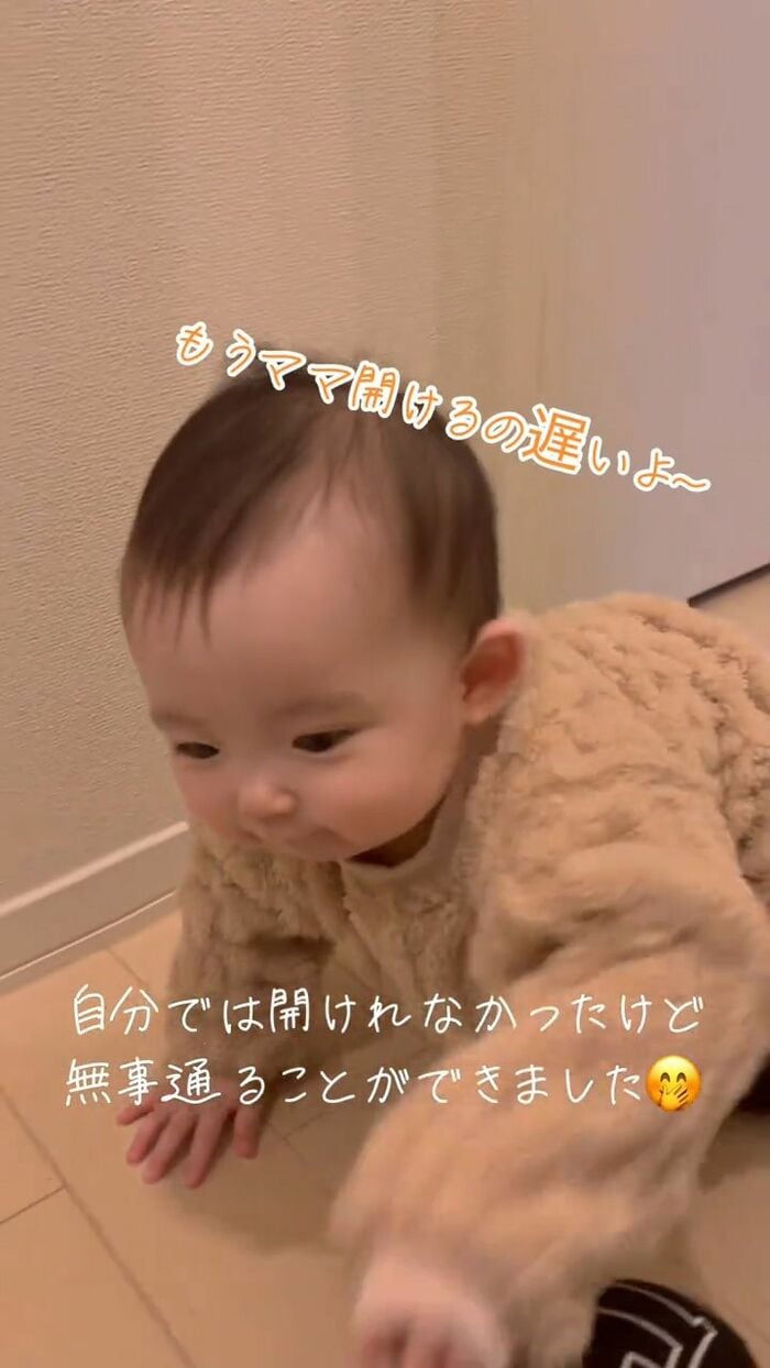 最後は「(もうママ開けるの遅いよ〜)」と喋っているかのように声をあげてママの元へハイハイするらなちゃんの姿が映し出されていました。