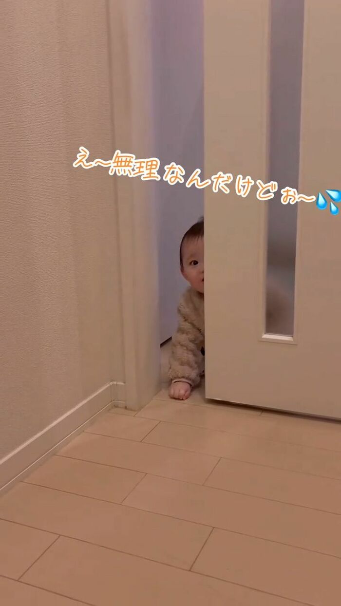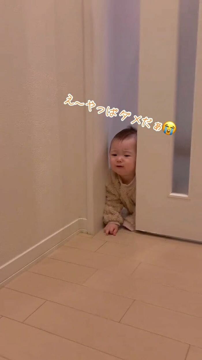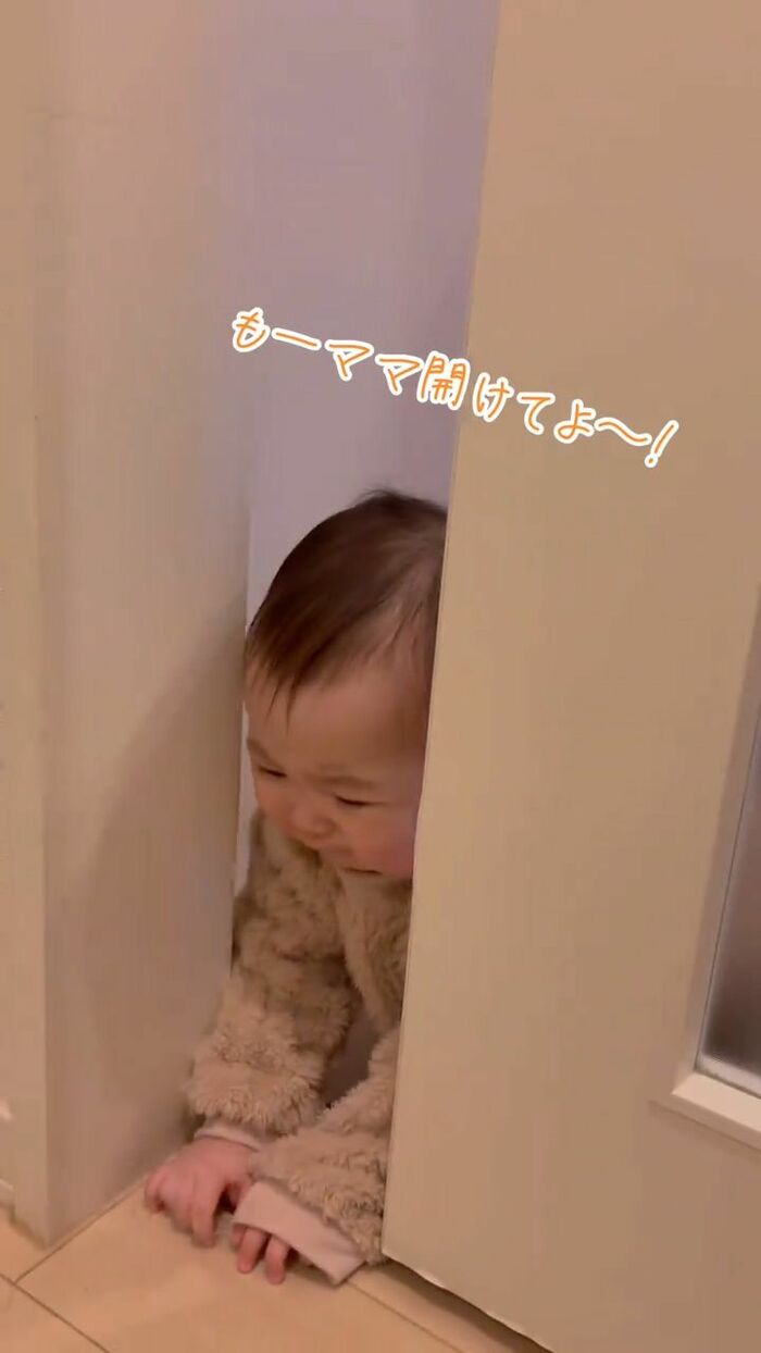 「(ママ開けてよ〜!)」と泣いて訴えかけてくるらなちゃんにママも完敗。ドアを開けてあげると…