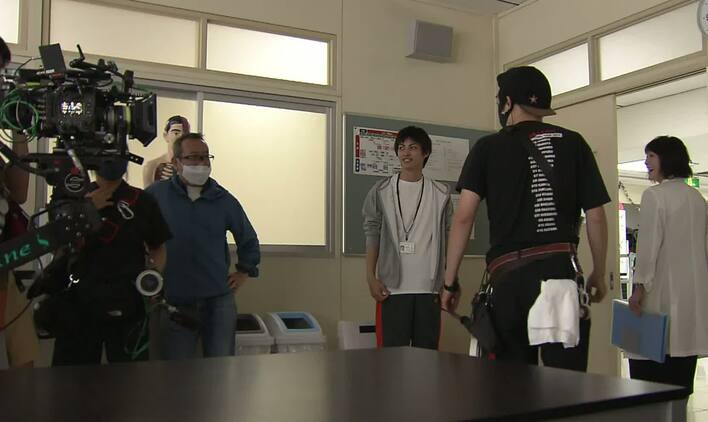 撮影は、夏真っ盛りの8月にスタート。初日の理科準備室での撮影は、備品の人体模型を改造、口から飛び出すピンポン玉をよけて、反射神経を鍛えるというシーン。ピンポン玉がうまく飛ぶか、スタッフが入念にチェックする様子に、神尾も貫地谷も大笑い。
