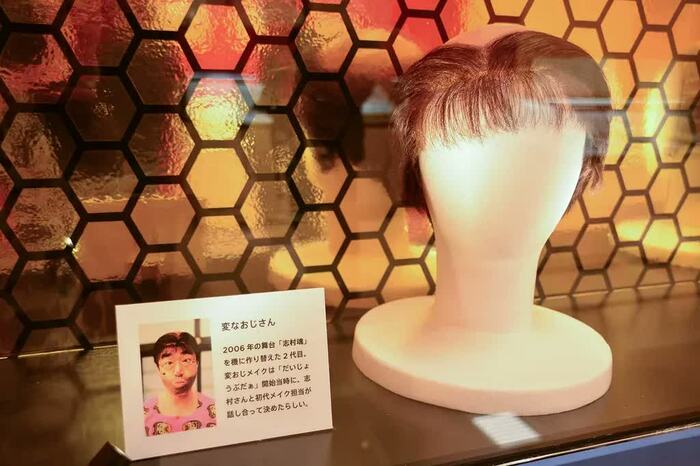 続いては、展示エリア。志村さんの私服や番組の台本、コントのキャラクター用のかつら、小道具など、実際に志村さんの気配を感じられるような展示品が並んでいる。特にかつらは充実のラインナップとなっており、細部までじっくり観察することが可能だ。ちなみに、記者は「どうなっているんだろう」と、ずっと疑問に思っていた「変なおじさん」の前髪と、髪の毛と皮膚の境目を確認できて感無量だった。