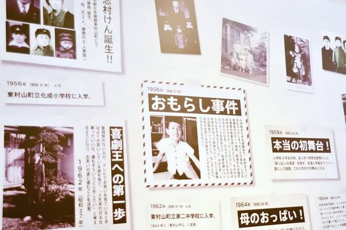 志村さんの誕生から昨年3月に亡くなるまでの、まさにお笑い界のレジェンドの軌跡はまさに「お笑いの歴史」。そのすごさに息を飲む…が、よくよく見ると、さすが「大爆笑展」、随所に「おもらし事件」「いかりや邸居座り事件」「オナラ激怒事件」などの、笑える事件から、「パチンコ店罵声被害事件」「1500万円超強盗被害事件」といった笑えない事件簿が年表に彩りを添えている。